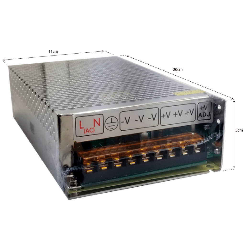 Fuente switching 12 VCC que garantiza alimentación continua.